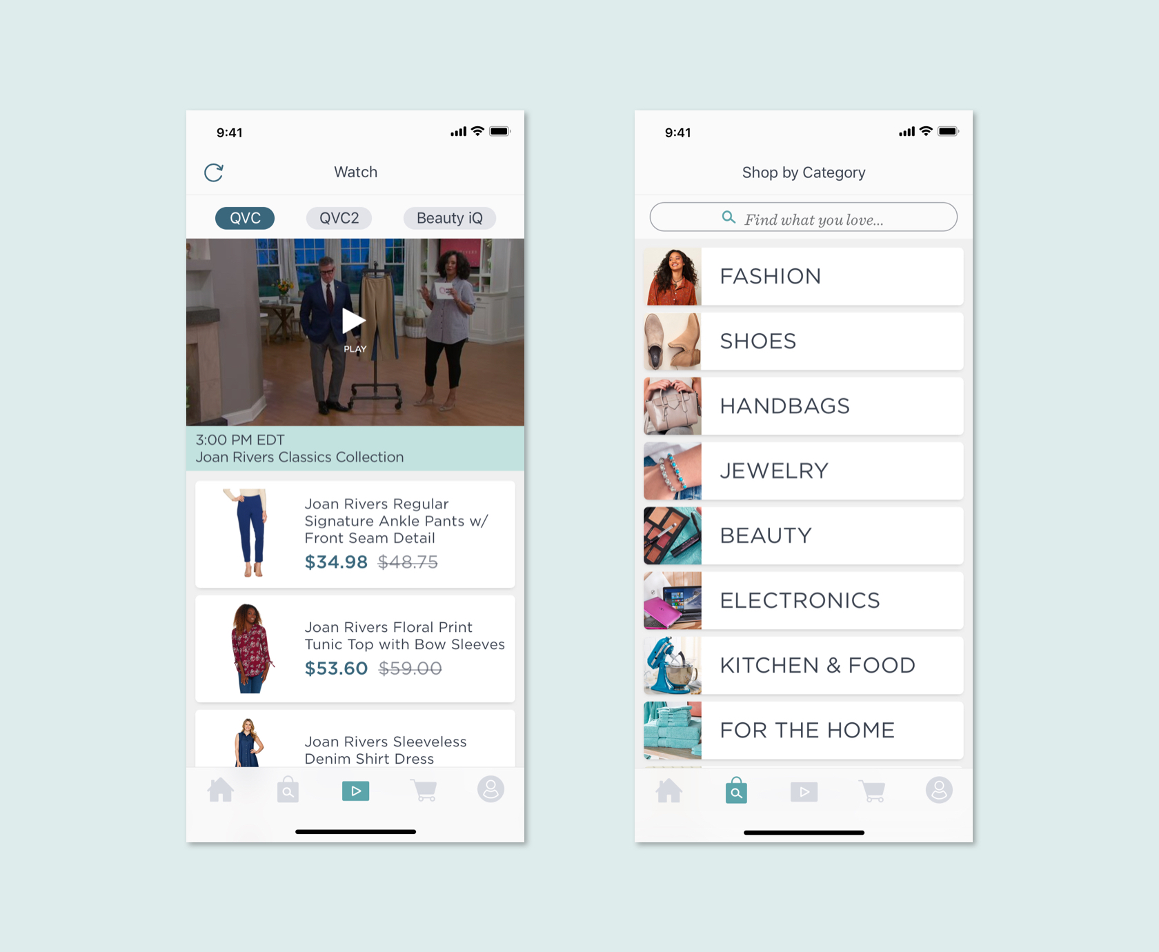 While a UX Design intern at QVC, my creative director challenged me with the task of redesigning the company's current iOS app. Stepping away from the existing branding, I designed a new look and feel, as well as improved process flows within the app. QVC's tagline is "Find what you love, love what you find." Capitalizing on this brand mantra, I created a more robust wishlist and bookmarking feature within the app. This wishlist experience curates content for the user based on their habits, providing a more personalized shopping experience.